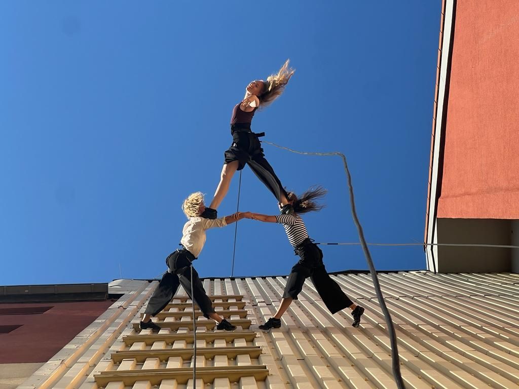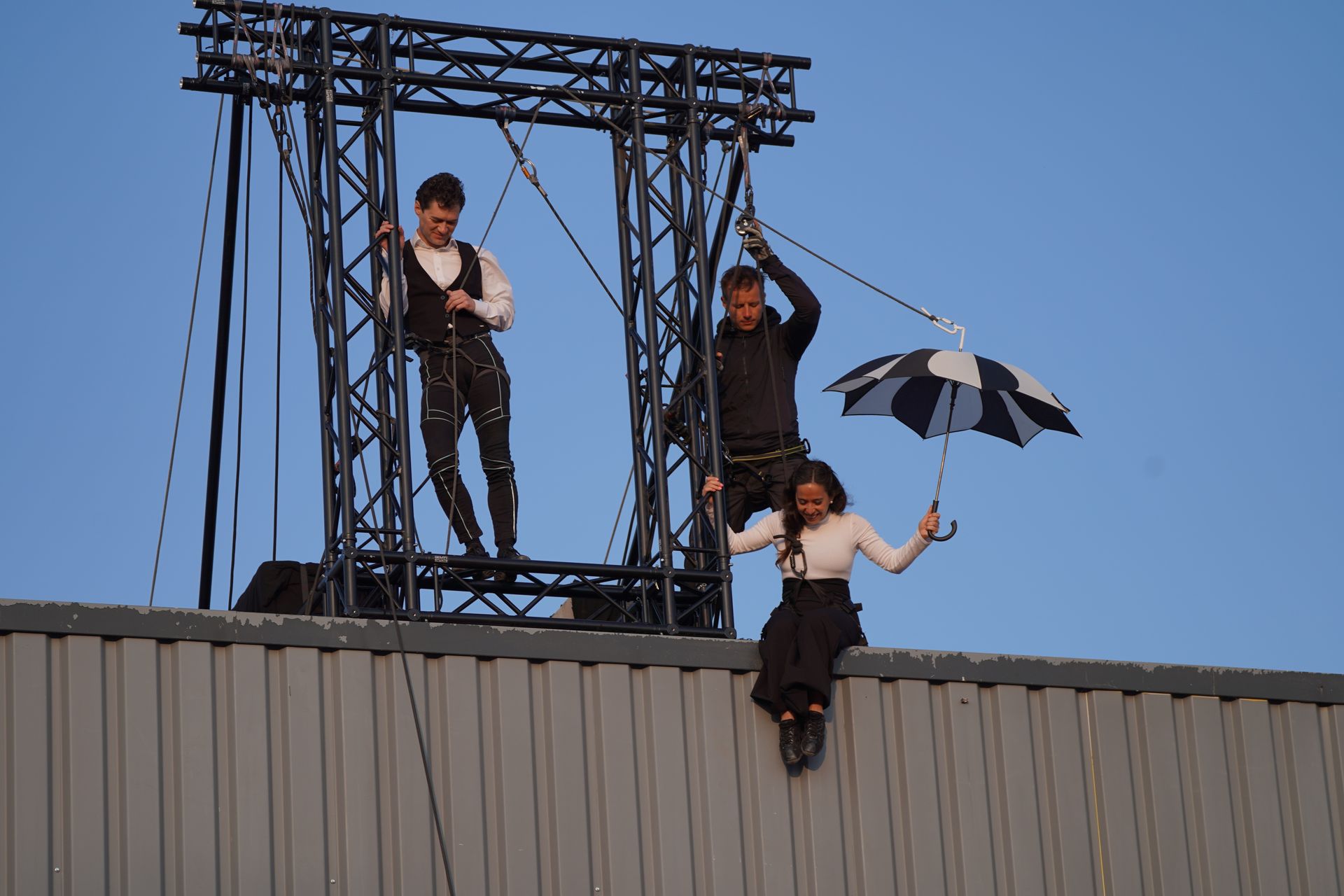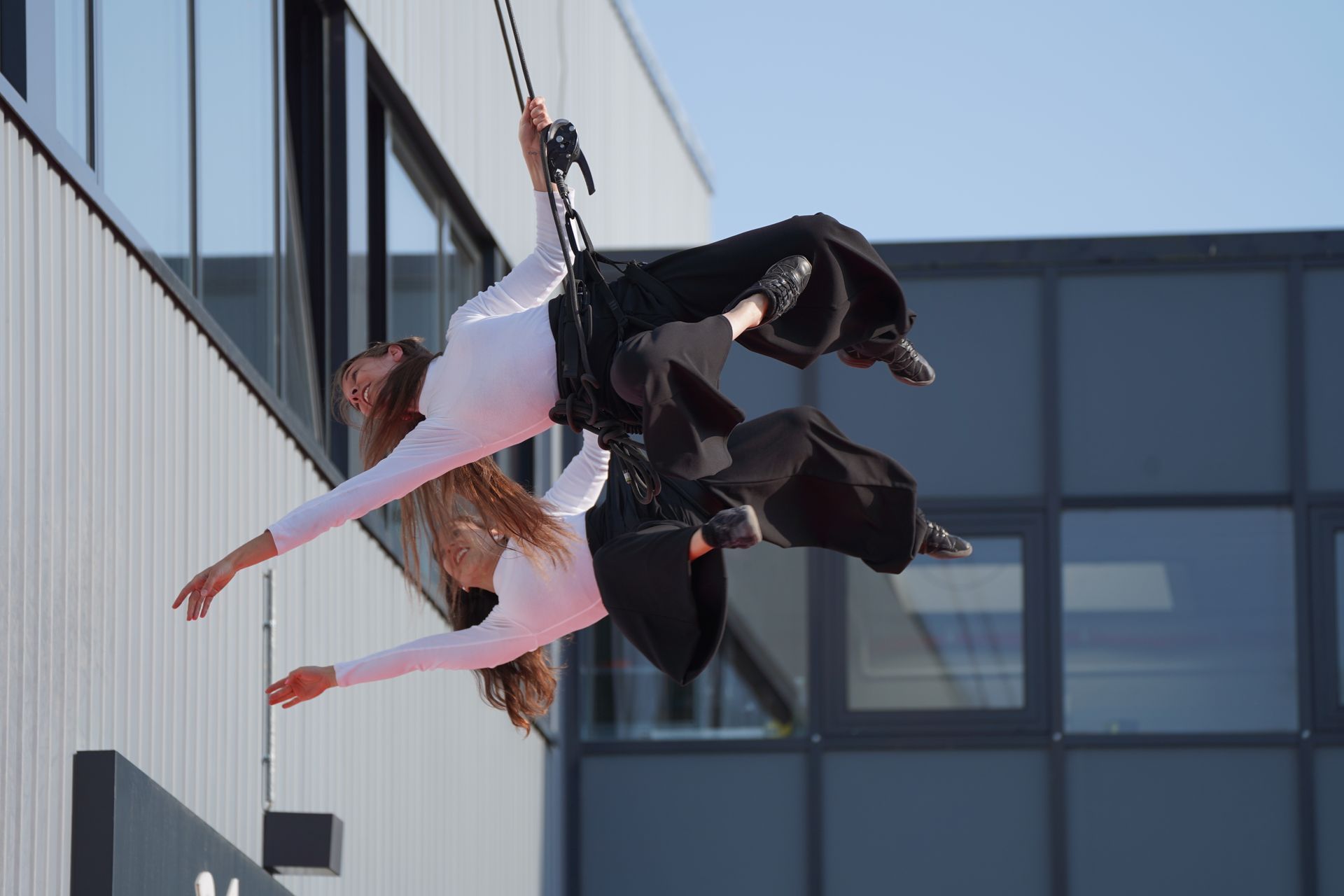 Seit über 10 Jahren fliegen wir im Harnes und Seilen gesichert und zeigen fliegenden Tanz in vielen Formen und unterschiedlichen Techniken. Wir setzen diese Art des Tanzens in Theaterinszenierungen und Eventshows ein.