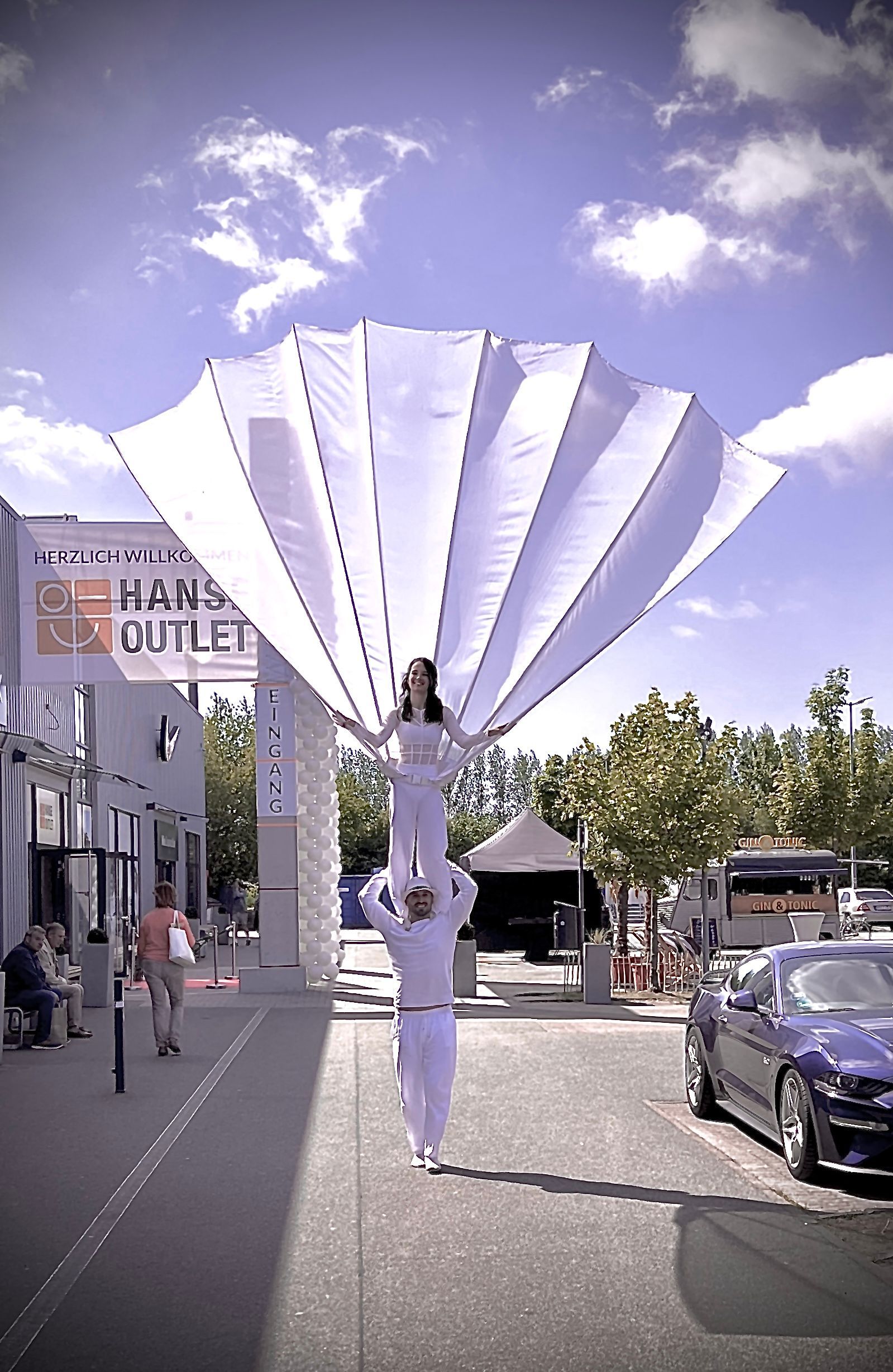 Dieser Walk-Act eignet sich sehr für Einkaufcentren, für Sommerevents in Parks oder auch für Messeevents.